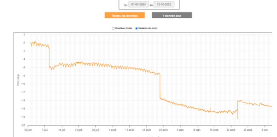 Les mesures de poids, de température et de pluviométrie ne sont donc pas super précises, mais permettent malgré tout de pouvoir suivre ces paramètres.